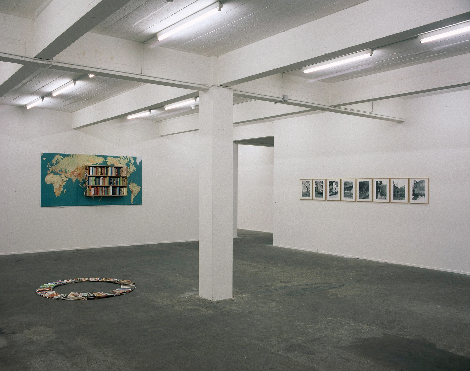 «Lesen», Ausstellungsansicht, 1996, mit Werken von Thomas Barow, Daniela Comani, Gerald Domenig, Claudia di Gallo, Rodney Graham, Jochem Hendricks, On Kâwara, Hermann Pitz, Harald Pridgar und Jacqueline Jurt. Photo: Kunst Halle Sankt Gallen, Rolf Abraham