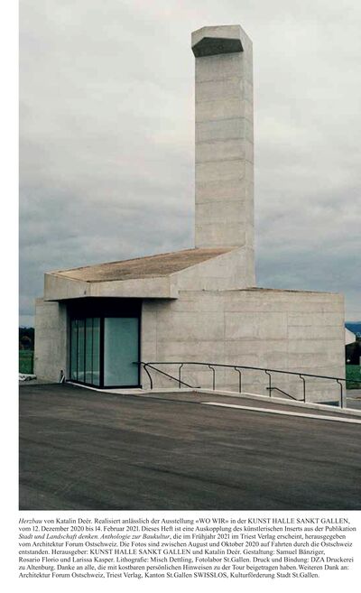 Die Publikation Herzbau erscheint anlässlich der Ausstellung «WO WIR» in der Kunst Halle Sankt Gallen (12. Dezember 2020 – 25. April 2021). Das Heft ist eine Auskopplung des künstlerischen Inserts aus der Publikation Stadt und Landschaft denken. Anthologie zur Baukultur, die im Frühjahr 2021 im Triest Verlag erscheint, herausgegeben vom Architektur Forum Ostschweiz.