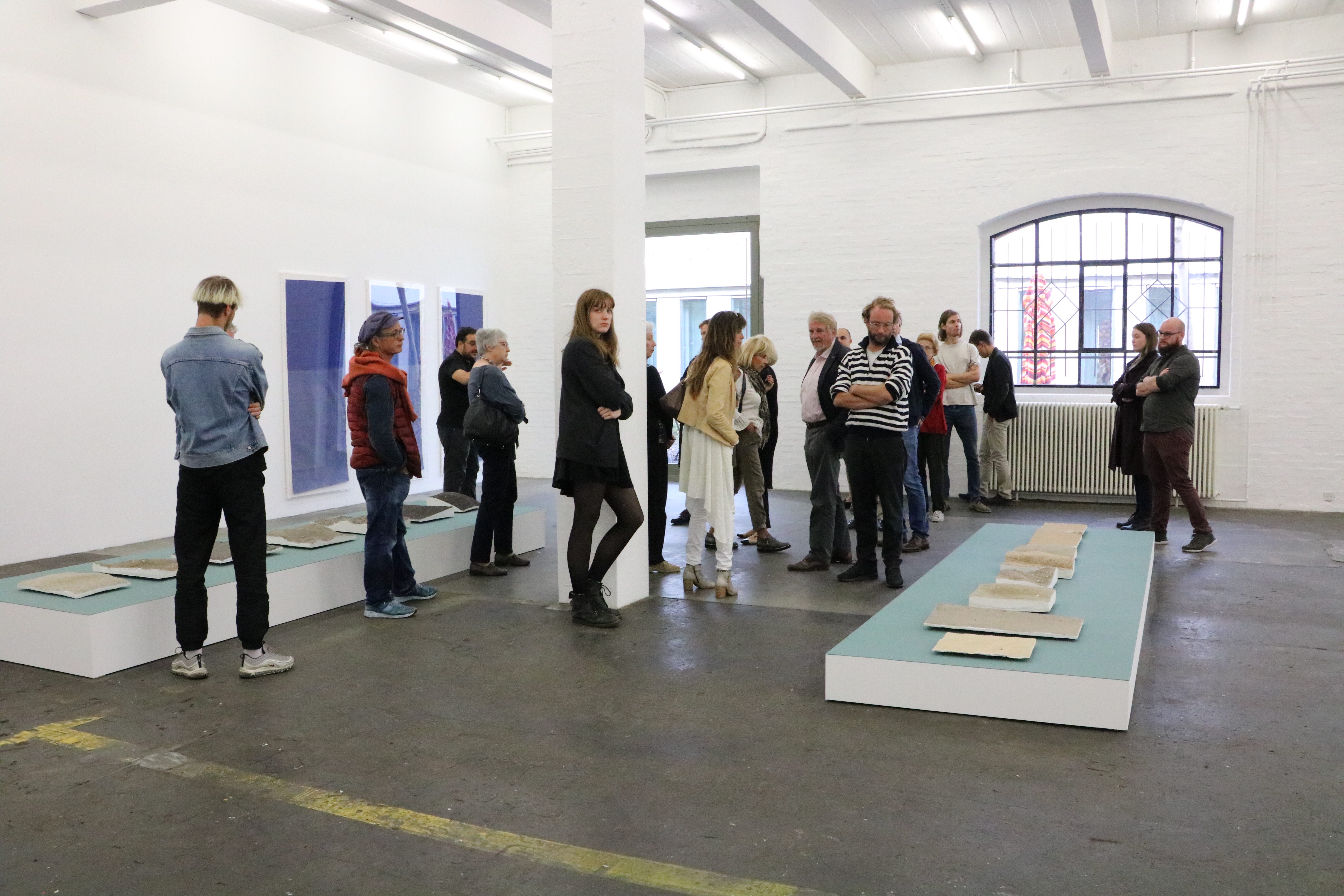 Die Kunstvermittlerin führt durch die Ausstellung «Notebook» von Alexandra Bachzetsis.