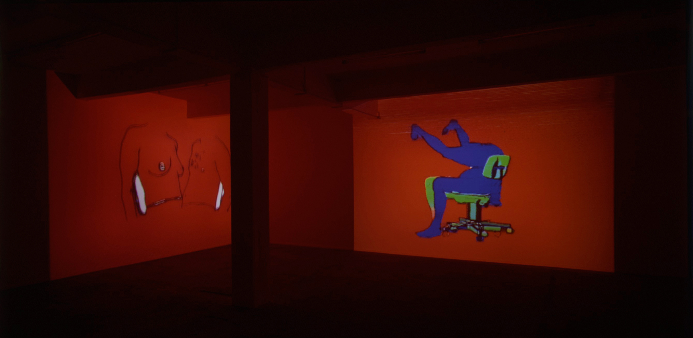 With this show, the English artist Angus Fairhurst realised his first solo exhibition in Switzerland. Angus Fairhurst belongs to the first generation of young British artists who have received international recognition since the now legendary exhibition «Freeze» (London 1988). Fairhurst's work is both cross-media and widely networked in terms of content. In his installations, music performances, sculptures, paintings and drawings, the motifs of the body, movement and repetition constantly play a decisive role. They reflect Fairhurst's interest in rhythms and speeds, in the dynamics of our time, in which 'sampling' has also become a strategy in the visual arts. In his solo exhibition «This Does Not Last More Than Ten Seconds», Angus Fairhurst will be showing six current video animations in all three rooms of the Kunsthalle St.Gallen, which are being presented in this form for the first time. At the center of his latest works are animations of movement in which male and female bodies combine to form an ever-repeating shape. In his works, he thematises the interface between femininity and masculinity as an ongoing search for the so-called other, although the other is only distinguished by slight formal changes