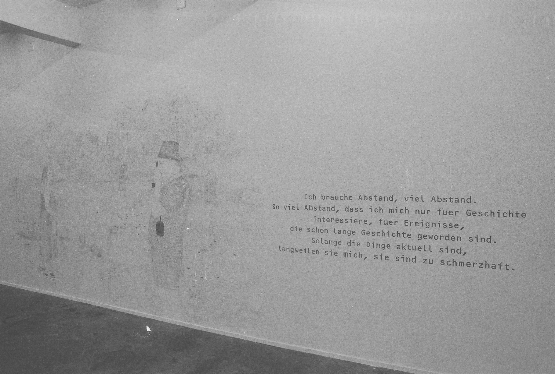 The Basel artists Claudia and Julia Müller are showing wall drawings, texts and objects in the Kunsthalle. Artists from Eastern Switzerland, starting with Idda Rutz and Sepp Müller, design the other two rooms in three- to four-week cycles. The exhibition is to be seen in the context of the annual programme, which intends to create and design spaces physically and mentally.