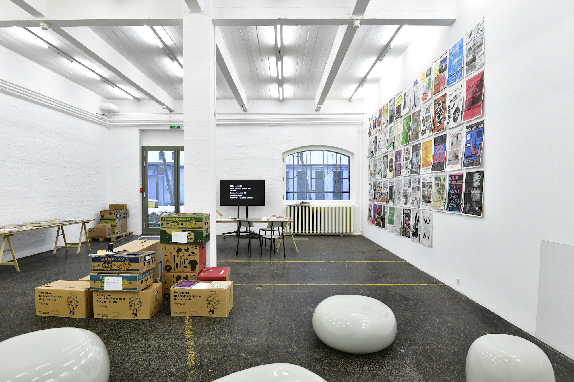 «WO WIR», exhibition view, 2020, archive of the Kunst Halle Sankt Gallen as a workspace. Photo: Kunst Halle Sankt Gallen, Sebastian Schaub